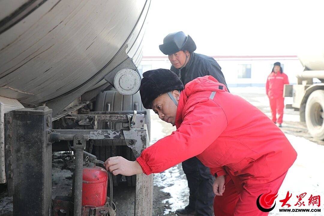 梁斌深知,这“第一车”的背后,不仅是新一年生产起步的关键,也承载着大家新的一年平安顺遂、红红火火的期盼。为此,他俯下身,对即将装油的车辆进行着近乎严苛的“体检”:静电接地是否可靠?车辆灯光穿透浓雾是否清晰?灭火器压力是否正常?每一个细节都不放过,逐一确认。“师傅,雾大路滑,就算路再熟,今天也得当成新路来跑,安全第一!”他一边检查,一边反复叮嘱准备出发的驾驶员。话语朴实,却透着沉甸甸的责任。