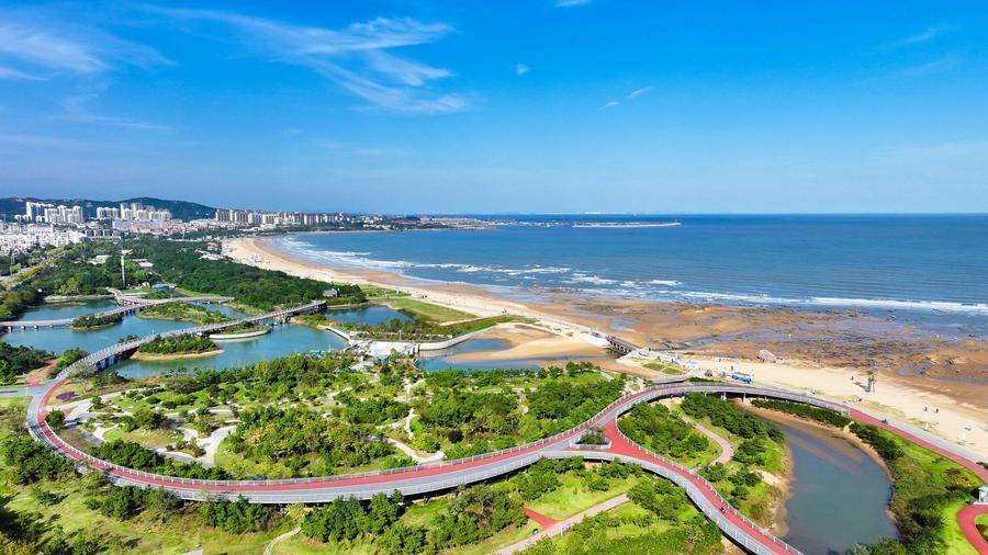 这是2025年10月22日拍摄的山东省日照市张北湾阳光海岸绿道及海湾景色(无人机照片)。