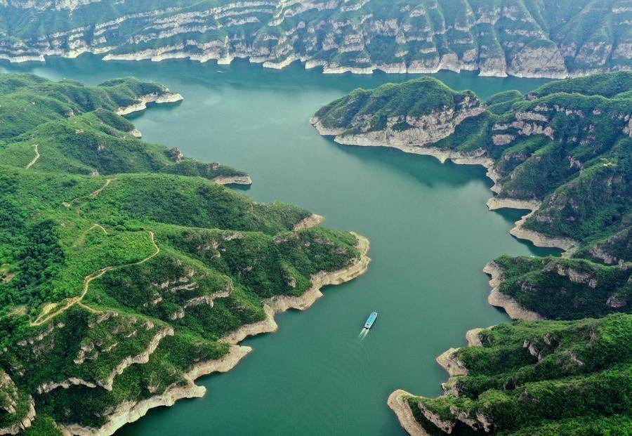 这是2024年5月28日在河南省济源市拍摄的黄河三峡景色(无人机照片)。